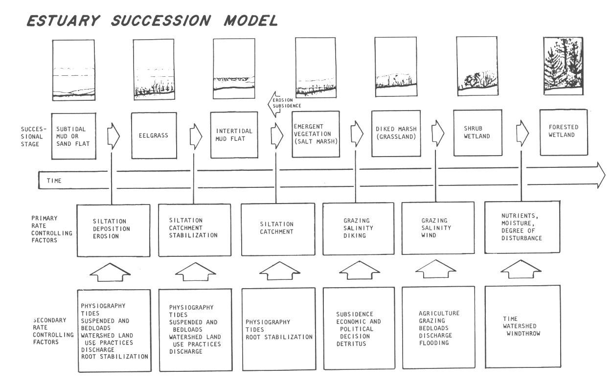 The figure at right is a model of successional development in Pacific Northwest estuaries (Procter et al. 1980b).